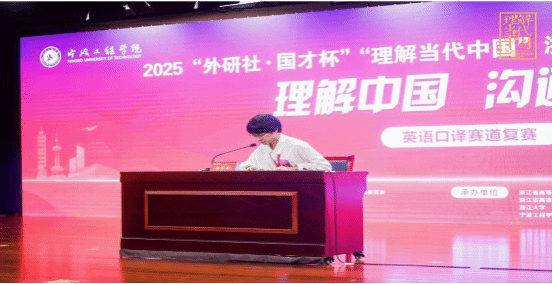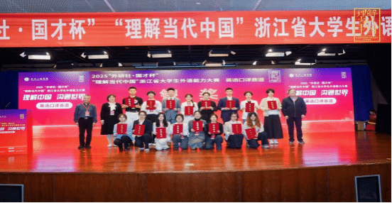 在省级赛事阶段,英语231班寿宏亮同学在第三届“外研社·国才杯”“理解当代中国”浙江省大学生外语能力大赛中表现突出,一举拿下笔译金奖、口译银奖、读写赛道银奖,凭借笔译项目的优异成绩成功晋级国赛;英语231班周奕欧同学则收获演讲铜奖、短视频金奖,其短视频作品顺利入围全国总决赛,为后续国赛突破奠定坚实基础。