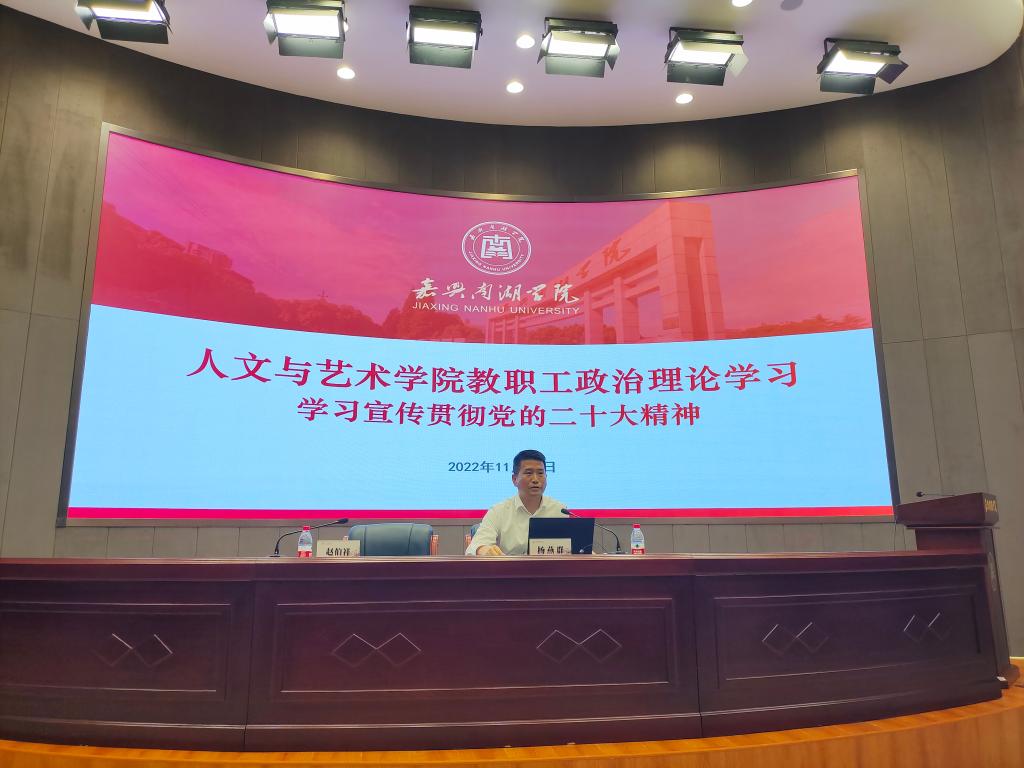 为深入学习宣传贯彻党的二十大精神,号召学院广大师生自觉把思想和行动统一到党的二十大精神上来,11月10日下午,人文与艺术学院召开教职工政治理论学习会,学院党委副书记杨燕群面向全院教职工、学生党员代表开展了党的二十大精神宣讲,副院长赵伯祥主持会议。