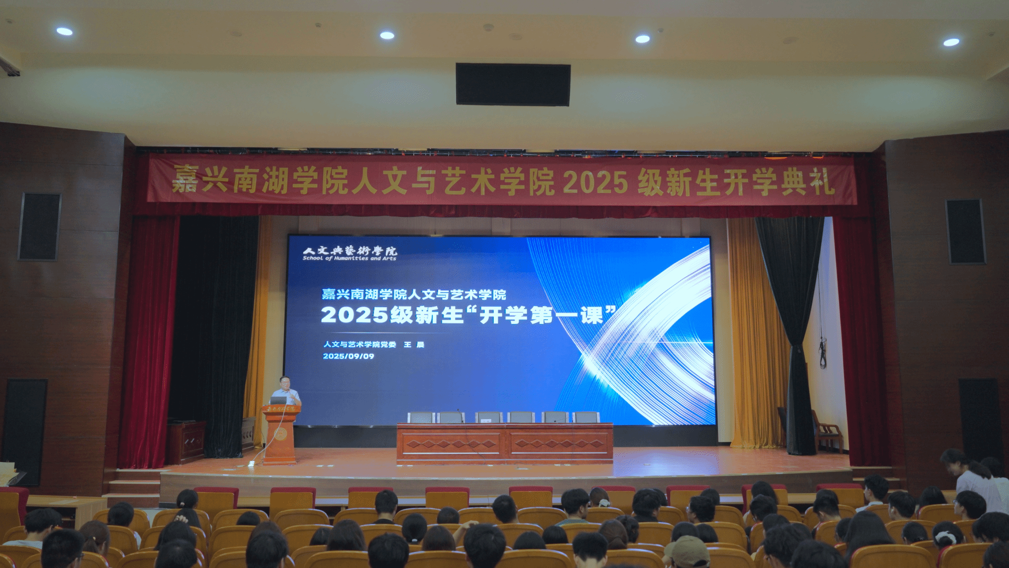 为帮助2025级新生快速融入学院集体,了解学院及学校的情况,9月9日晚,人文与艺术学院在第二报告厅召开2025级新生开学典礼。学院党政班子成员、各专业负责人、新生班主任、全体辅导员与2025级全体新生、部分老生代表齐聚一堂,共同迎接新生的大学新篇章。