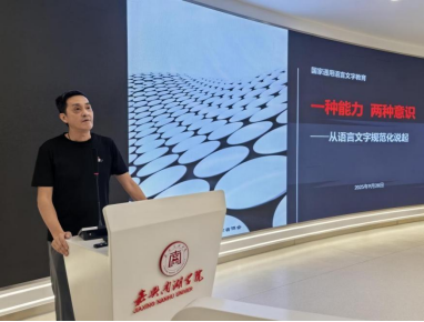 9月28日,由浙江省语言文字推广基地(嘉兴南湖学院)主办的“一种能力 两种意识:从语言文字规范化说起”专题讲座在融媒体中心举行。杭州市语言文字培训中心主任、浙江省语言文字工作者协会副秘书长王强老师为现场师生带来一场兼具专业性与实用性的语言文字规范化知识讲座。