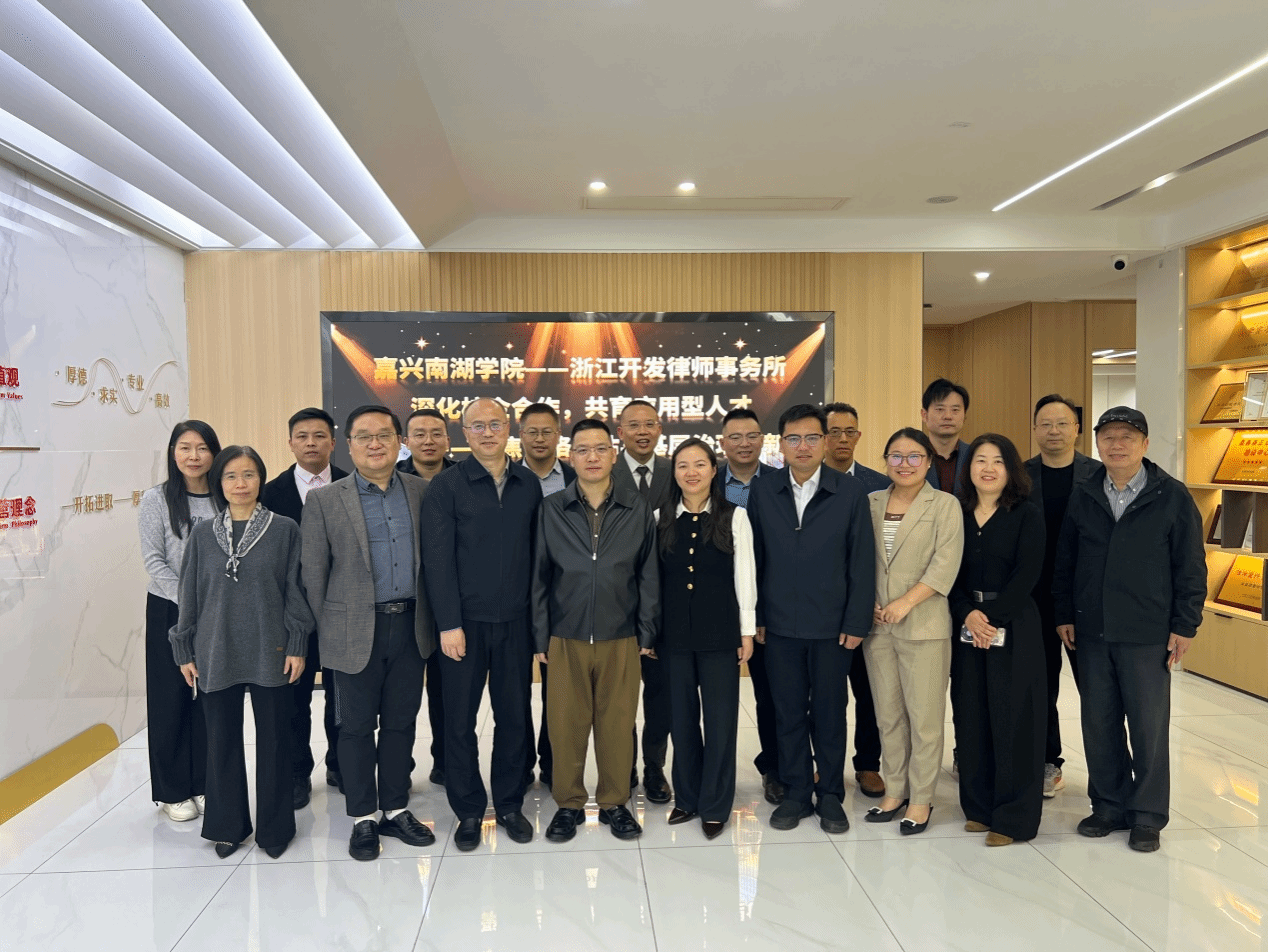 为深入落实本科教学工作合格评估要求,强化校外实践教学基地内涵建设,积极探索校企合作赋能基层治理与社会调解的新模式,10月29日下午,校长贾文胜带队赴浙江开发律师事务所调研交流。副校长赵渊,发展规划处、社会合作与国际交流处、人文与艺术学院相关负责人随同参加调研。浙江开发律师事务所主任安玉磊、执行主任郑诗贵等热情接待了我校一行,南湖区副区长王存乡、南湖区司法局副局长祝建平等领导参加了座谈会。