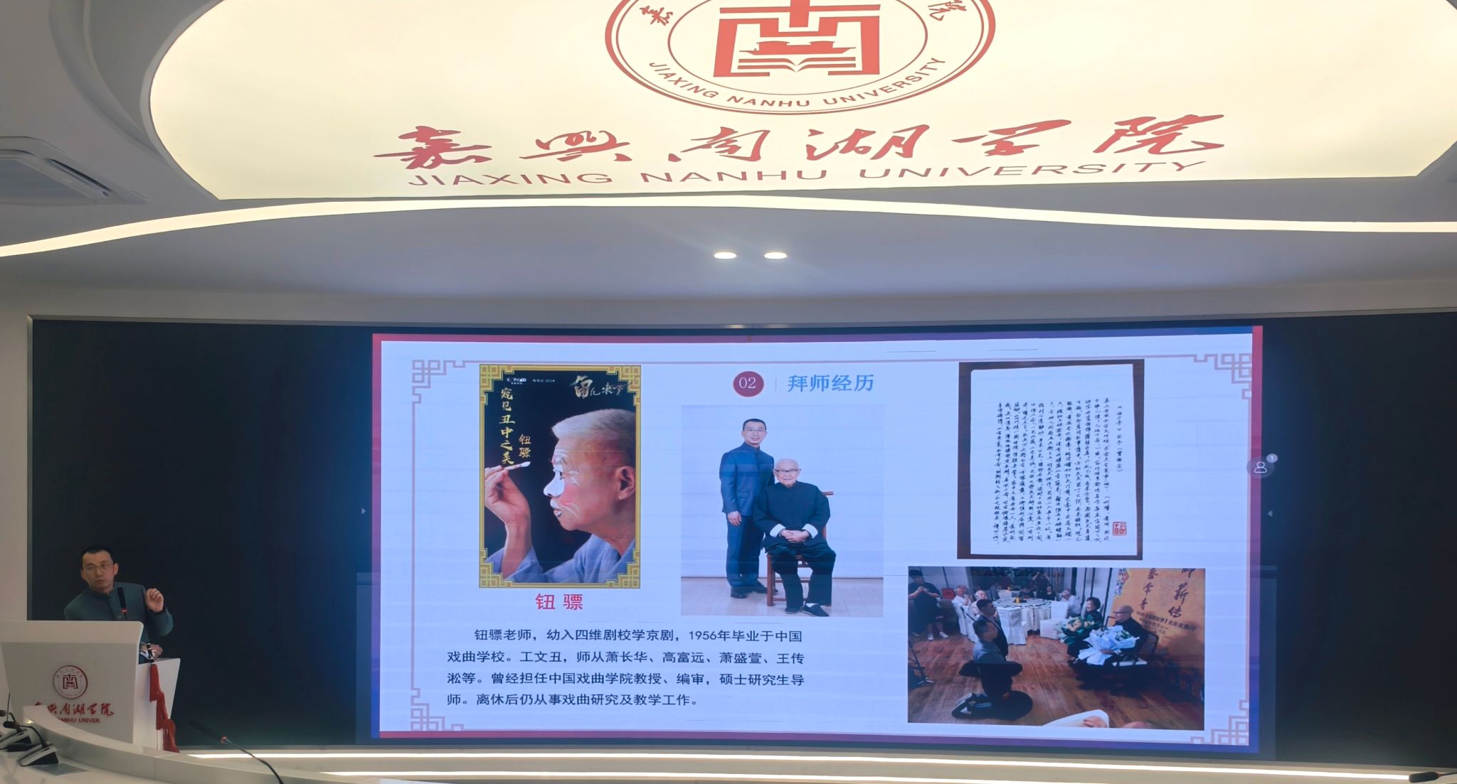 10月30日,浙江卫视艺人统筹工作室副总导演、一级导演夏迎宾应邀做客嘉兴南湖学院人文与艺术学院“文心讲堂”,为师生们带来了一场题为“有戏的人生更精彩”艺术讲座。在两个多小时的分享中,夏导以幽默风趣的语言、丰富的从业案例和深厚的艺术积淀,讲述了自己从工厂走向荧幕的戏剧人生,深入浅出地解析了京剧艺术的当代价值,现场掌声不断,互动热烈。