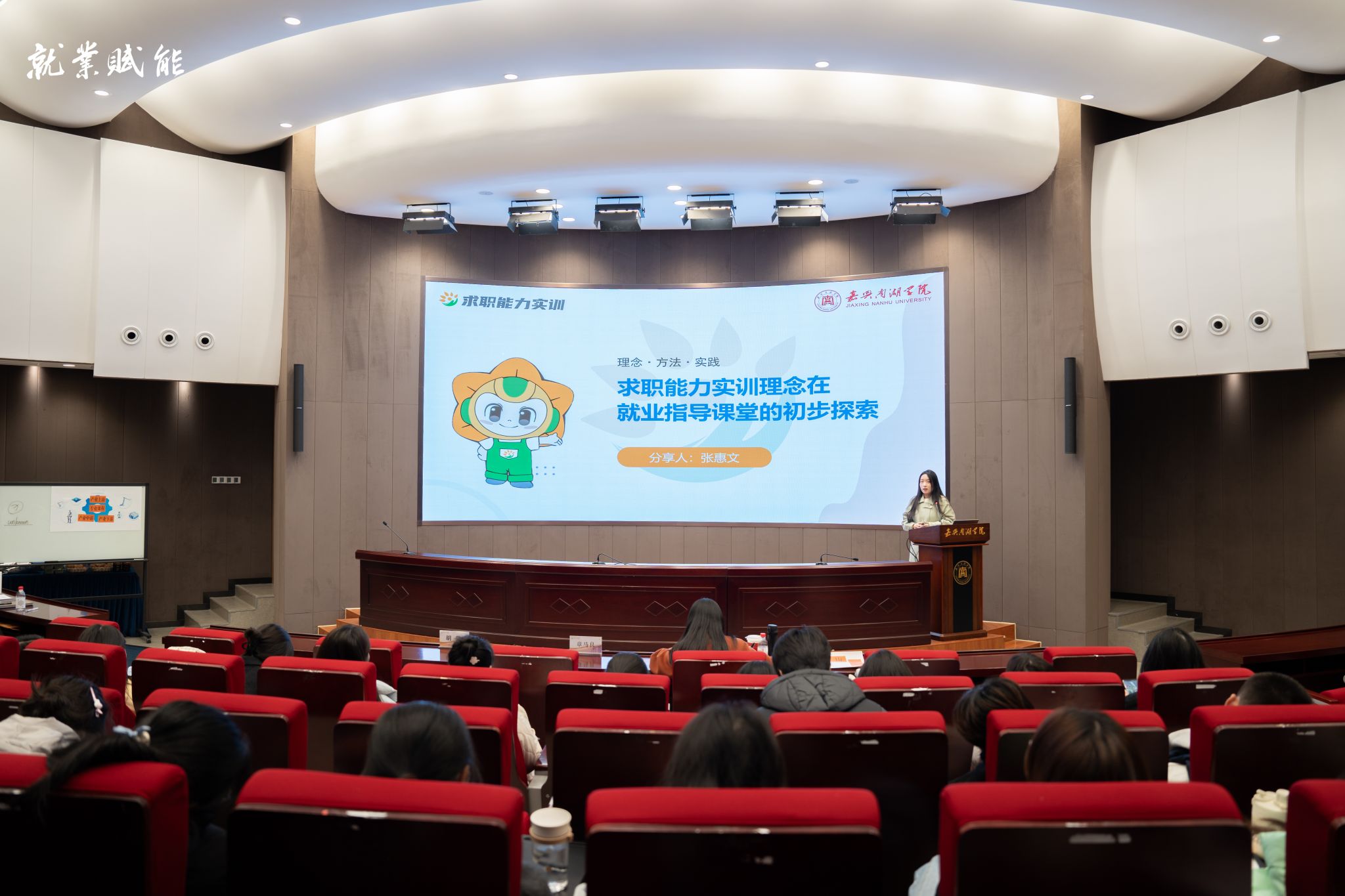 教学研讨环节将活动推向高潮。嘉兴南湖学院张惠文老师提出以“橄榄型结构”优化求职课堂设计;同济大学浙江学院陈漩老师剖析了就业结构性矛盾,倡导构建分阶段、精细化、数字化的指导体系;嘉兴南洋职业技术学院周其青老师聚焦“山腰青年”现象,探讨了学生心态调适与多元化就业路径的动态调整。