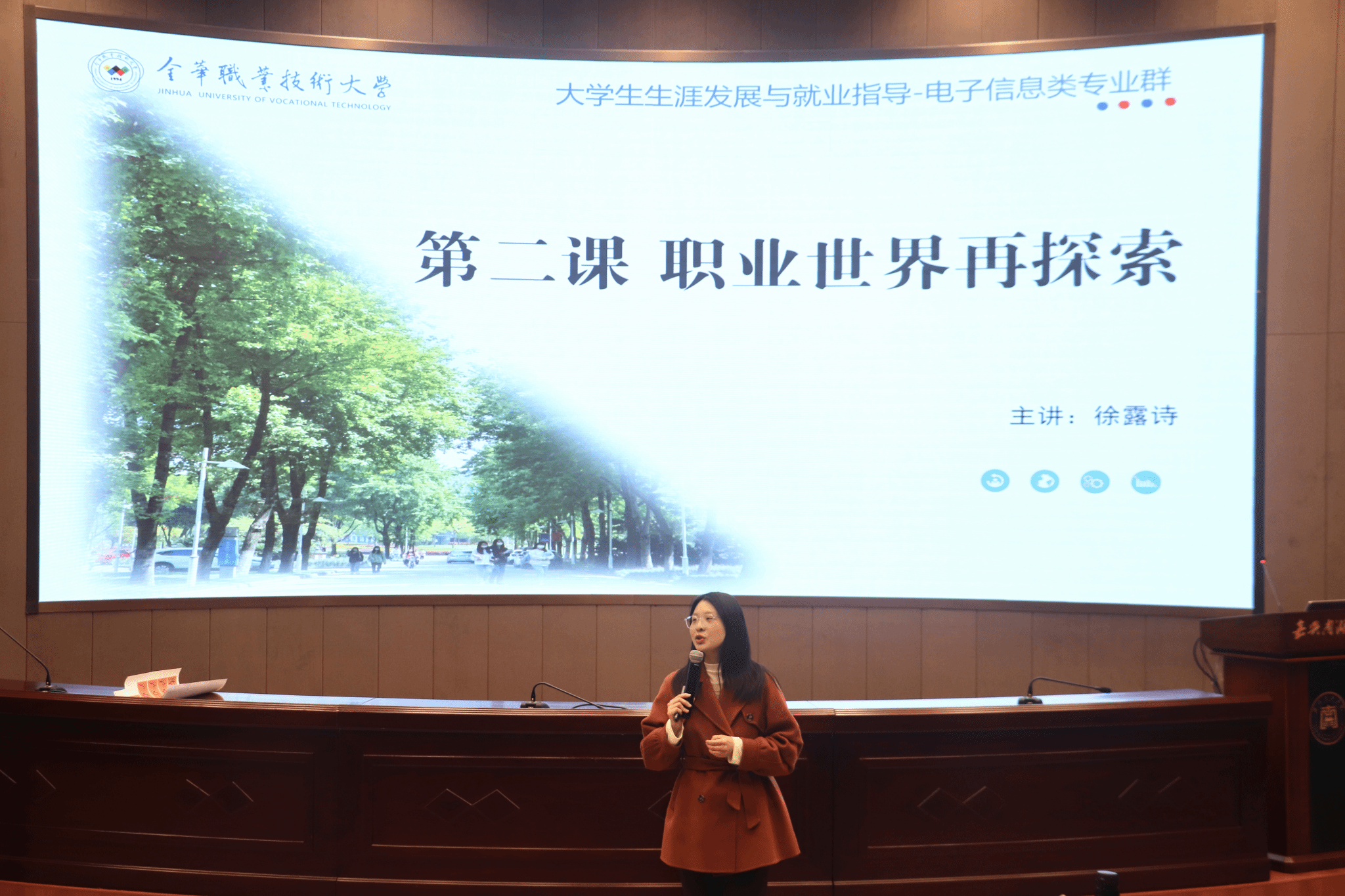 在示范教学环节,徐露诗老师以《职业世界再探索》为题,结合理论讲解、互动提问及“同心圆”分析工具,引导学生聚焦职业方向,拓宽就业视野。她提出,学生应树立“先就业、后择业”的理念,注重培养适应未来需求的“复合型能力”,增强就业竞争力。