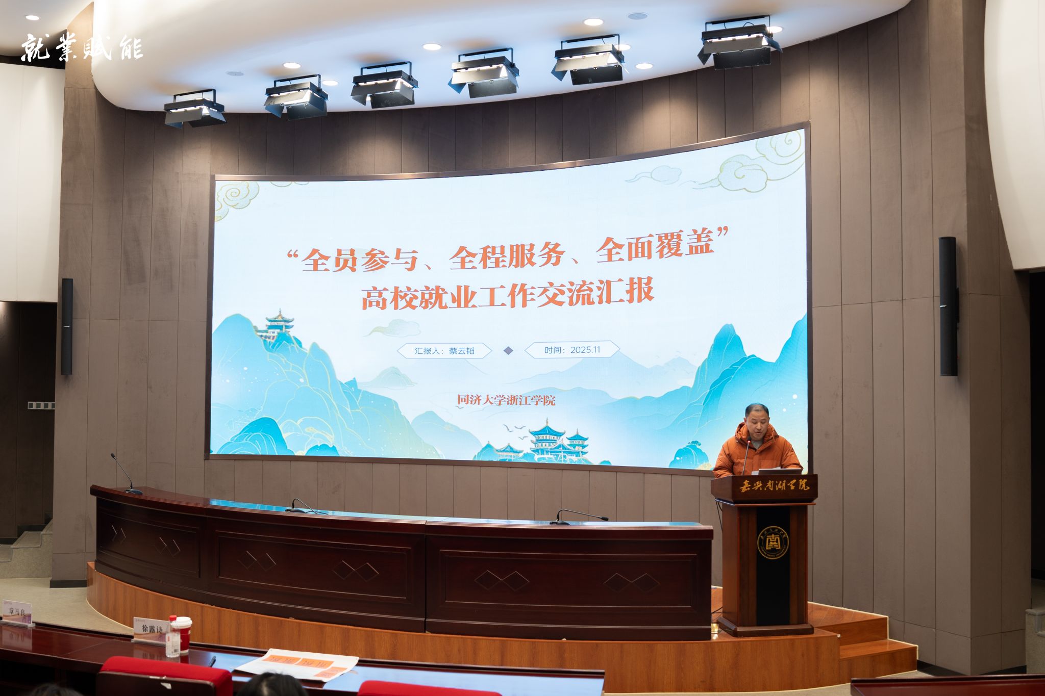 在就业经验分享环节,同济大学浙江学院蔡云韬老师介绍了“全员参与、全程服务、全面覆盖”的高校就业工作模式;嘉兴南湖学院焦茹霞老师分享了“四链融合”育人路径;嘉兴南洋职业技术学院孙韵婕老师则围绕康养护理领域,展示了校企合作培养人才的成功实践。